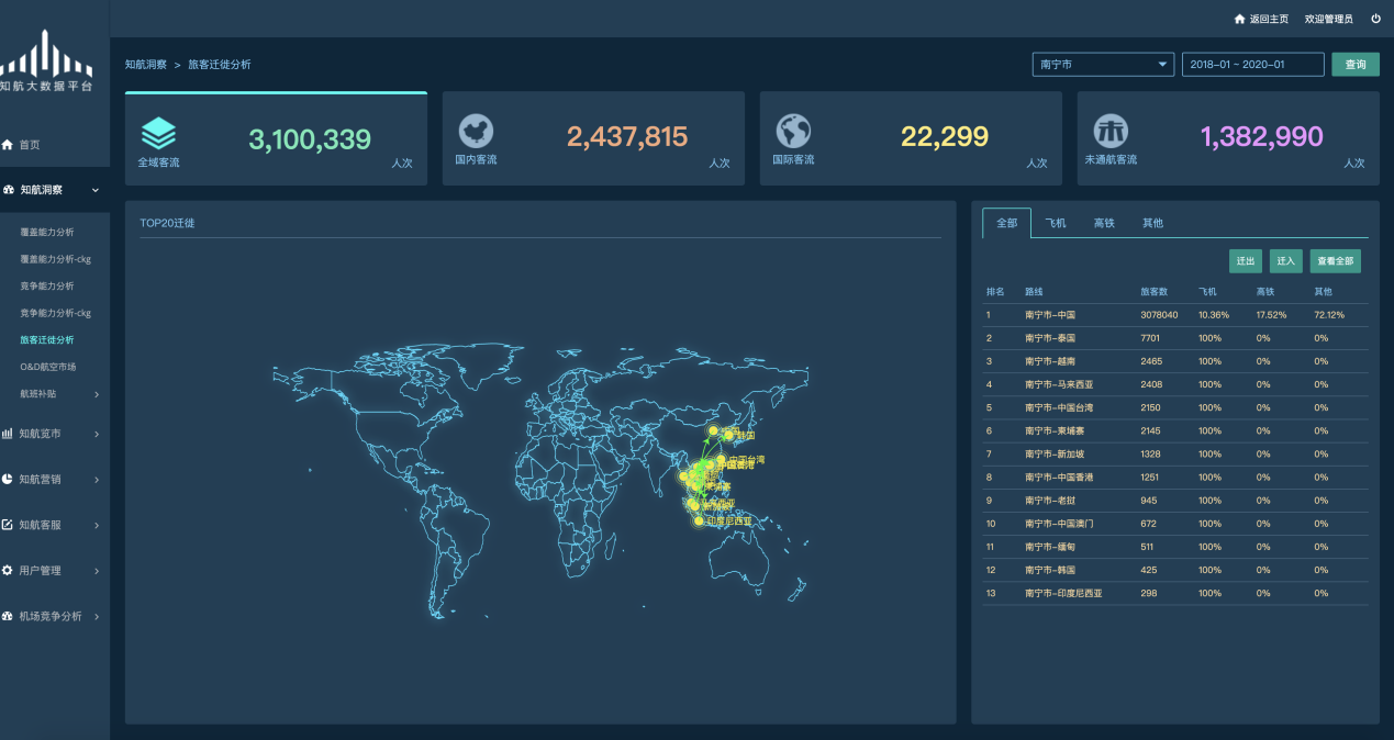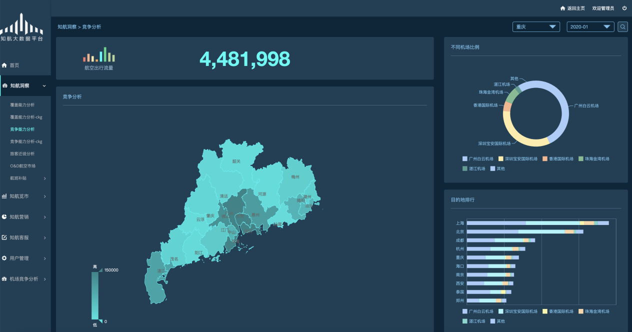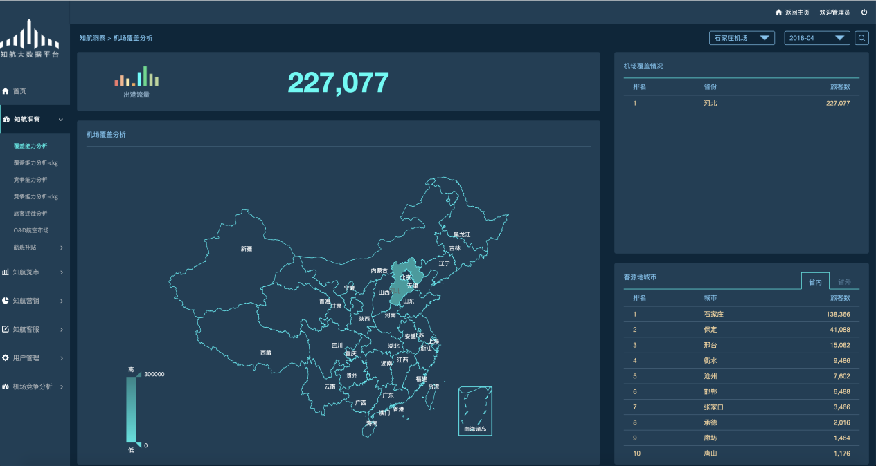 从机场覆盖能力、客户迁徙情况等多个维度为新开辟航线、已有航线优化提供数据支撑。