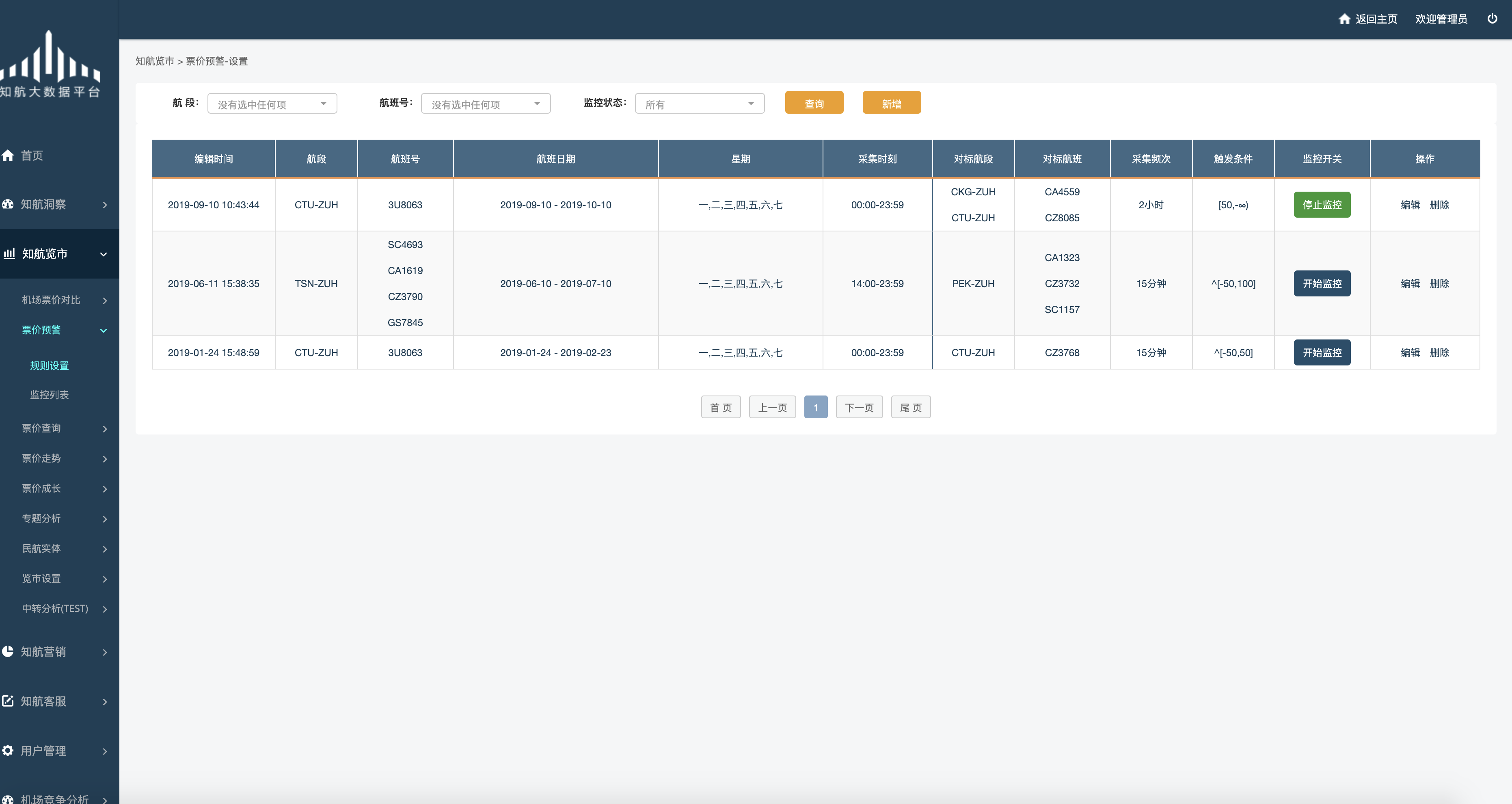 赫德阳知航览市产品旨在提升航班票价变化的自动化监控能力,通过系统化手段来实现过去人工手动完成的工作, 及时响应市场变化,实现对票价的实时监控、预警和预售趋势的分析。