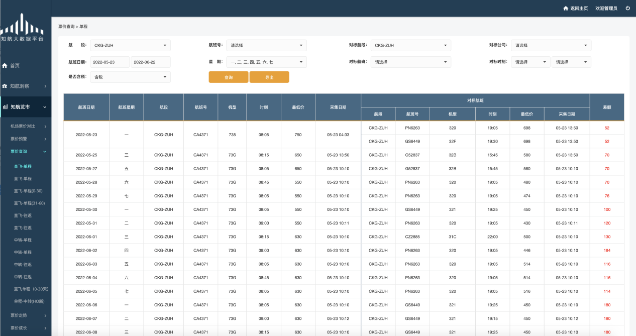提供票价检测与分析服务,航线全面覆盖,全天候自动化生产;多维度订阅,数据内容精确到日期 航班,1对1,1对多,多对多。